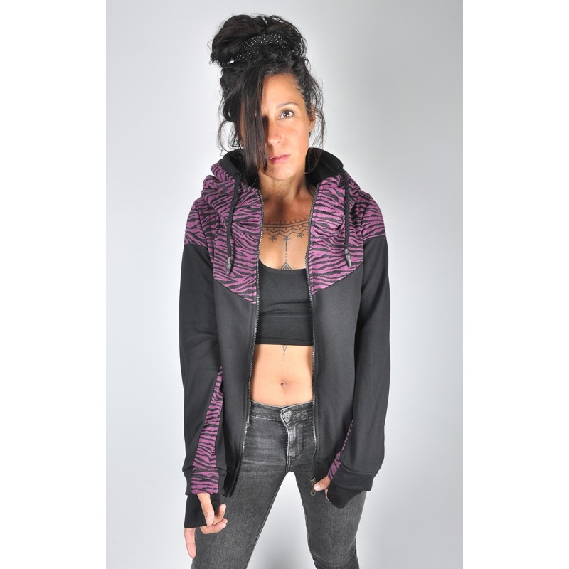 Dessuadora amb cremallera, coll alt, caputxa, butxaques i a les mànigues té