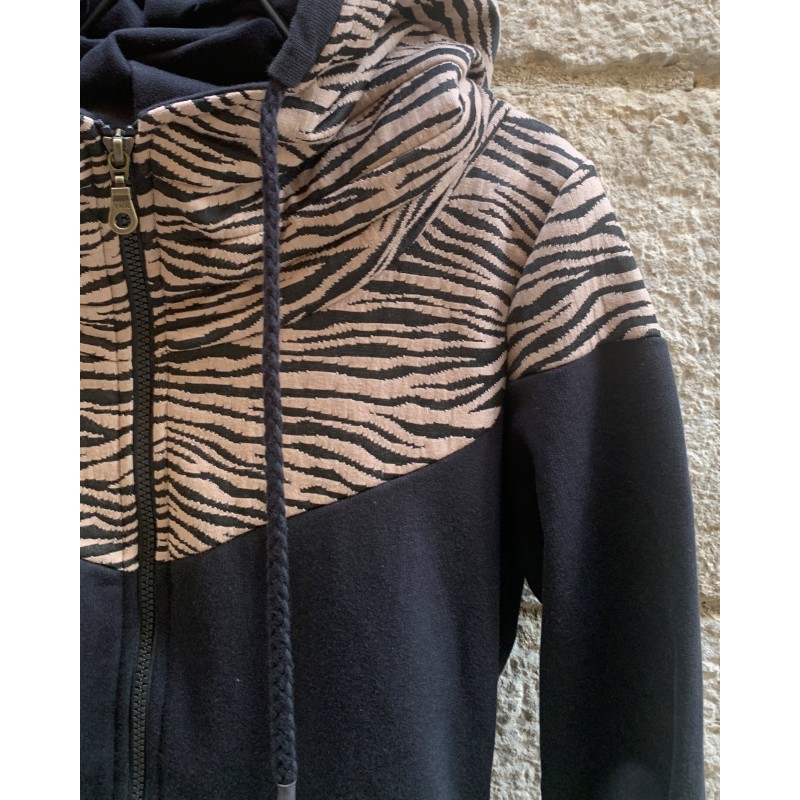 Dessuadora amb cremallera, coll alt, caputxa, butxaques i a les mànigues té