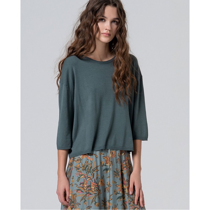 Jersei lleuger de viscosa fina amb escot rodó i màniga caiguda tres quarts.