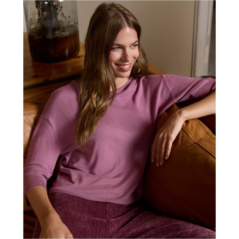 Jersei lleuger de viscosa fina amb escot rodó i màniga caiguda tres quarts.