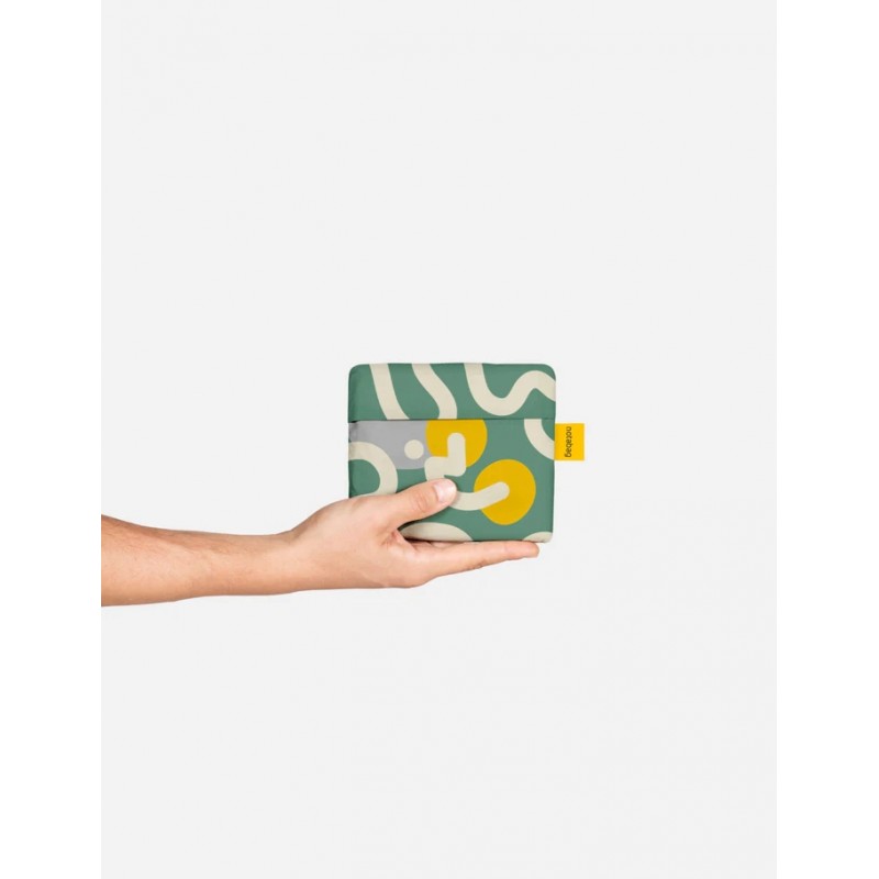 A l'interior de la bossa, hi ha una butxaca adjunta on pots guardar la cartera o les claus. Quan la bossa no està en ús, es plega en aquesta butxaca i es converteix en una bossa de la mida d'una mà.