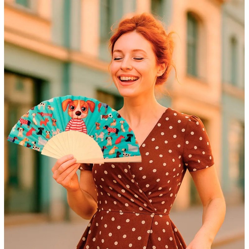 Ventall il·lustrat, fet de fusta Schima superba i tela de polièster