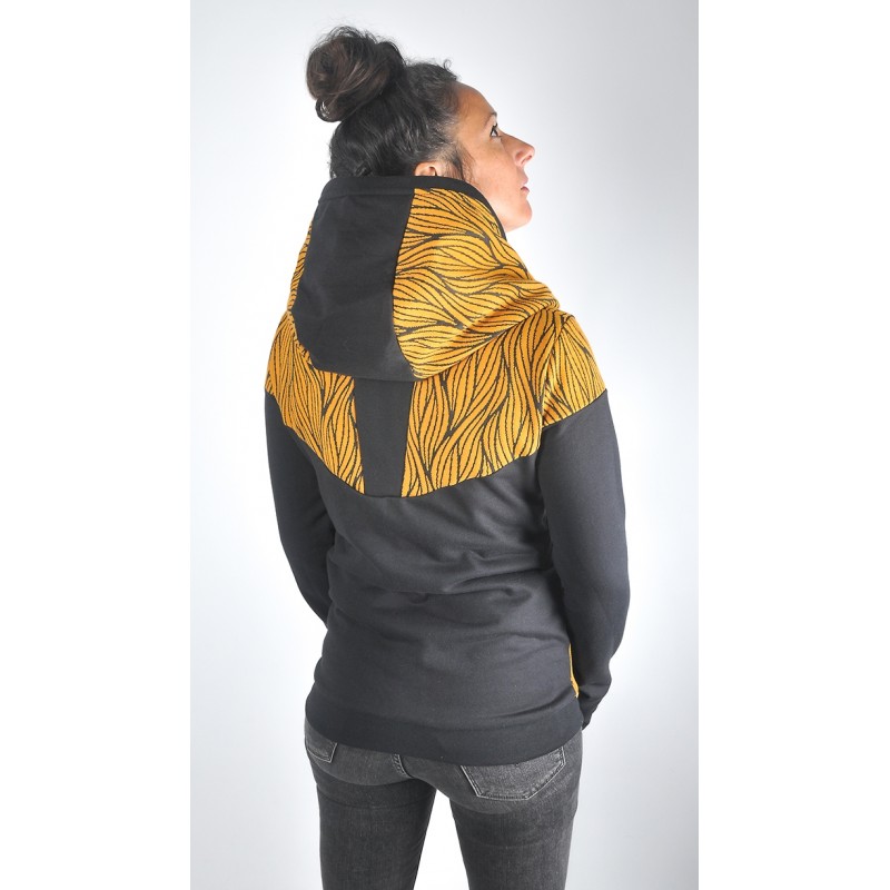 Sudadera con cremallera, cuello alto, capucha, bolsillos y en las mangas tiene