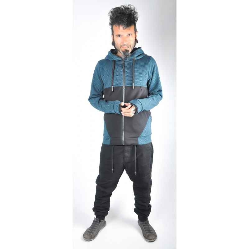 Sudadera con cremallera, capucha, bolsillos y en las mangas tiene