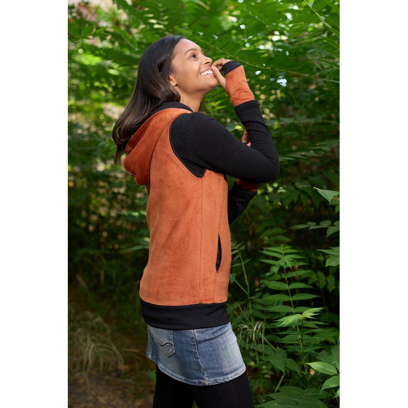 Chaleco capucha pana teja