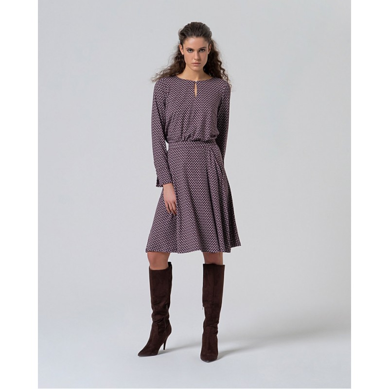Falda corta fluida estampada, sin cierres y con bolsillos delanteros.
