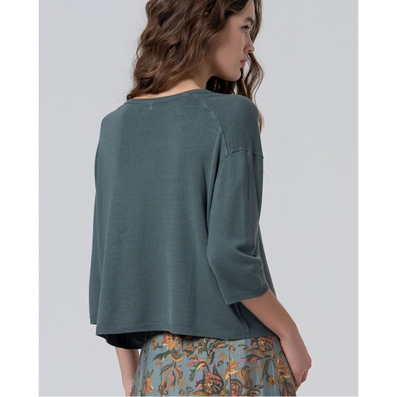 Jersey ligero de viscosa fina con escote redondo y manga caída tres cuartos.