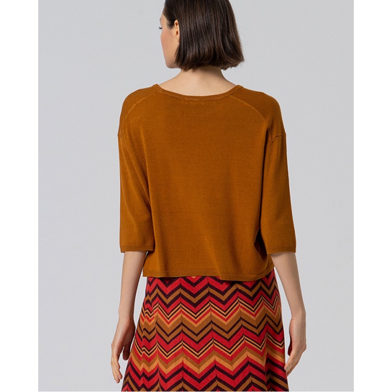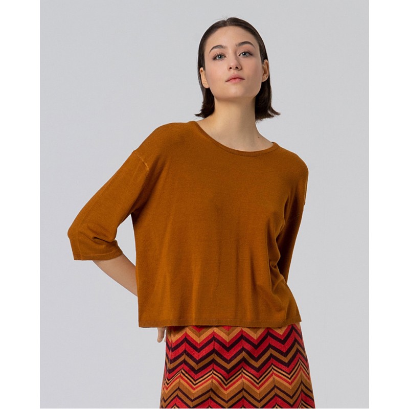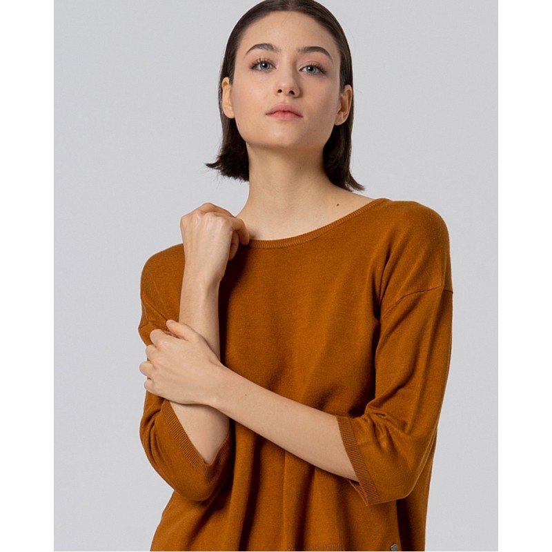 Jersey ligero de viscosa fina con escote redondo y manga caída tres cuartos.