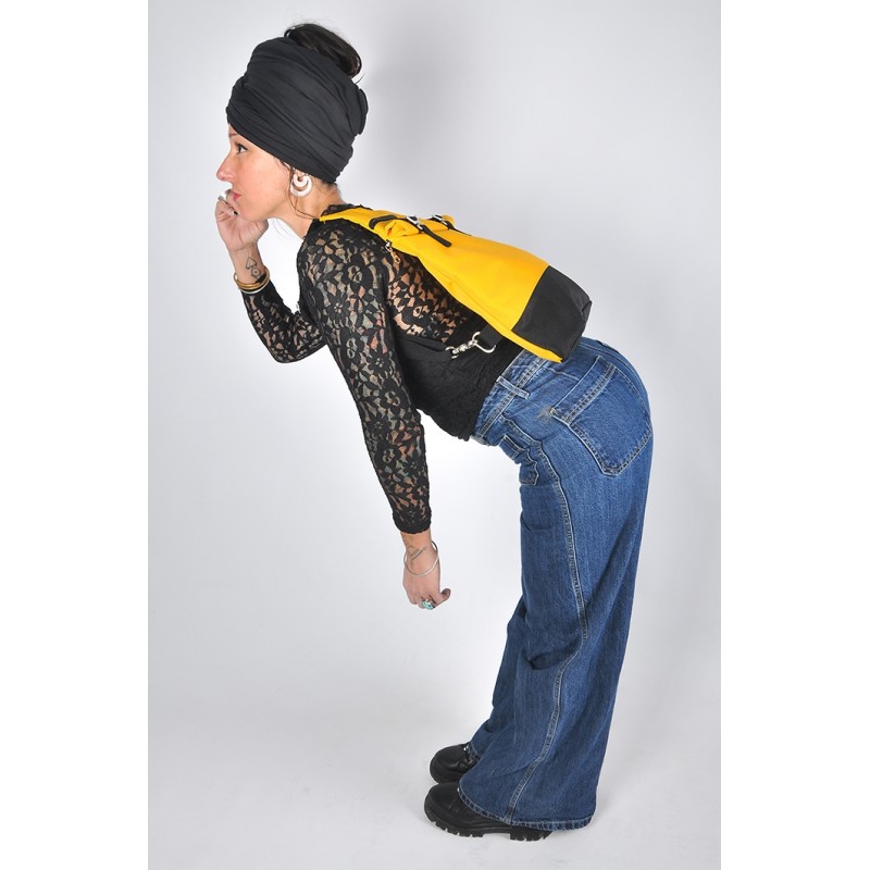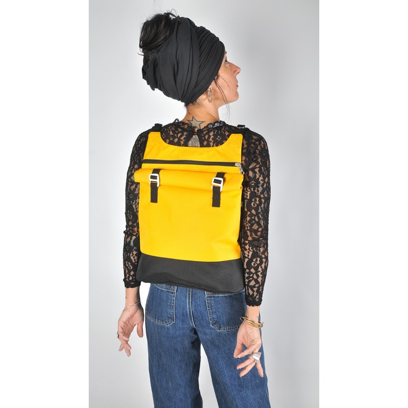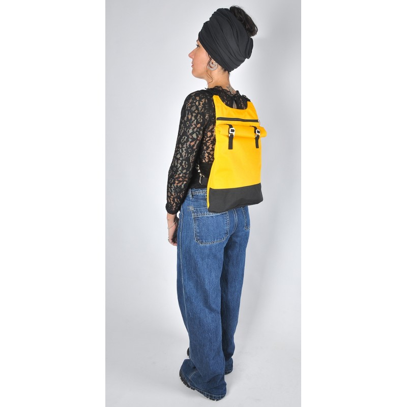 3 bolsillos, el principal con gran capacidad ,el bolsillo enrollado delantero y el bolsillo trasero, este funciona perfecto como antirobo.